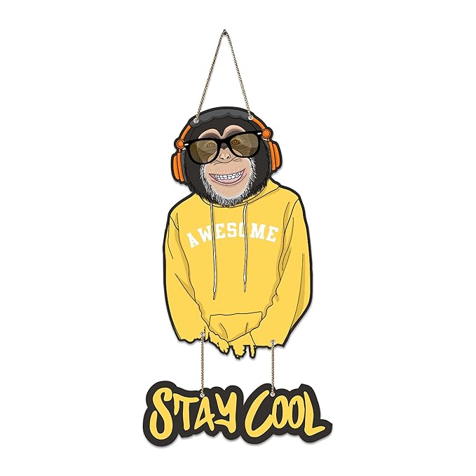 Artvibes Monkey Smile Printed Wooden Wall Hanging Ornaments With Quotes for Home Decor