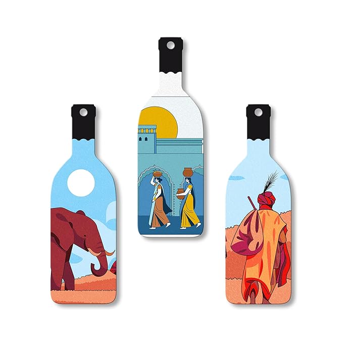 Artvibes Madhubani Art Wooden Wall Hanger for Home | Set of 3 | Multi 9
