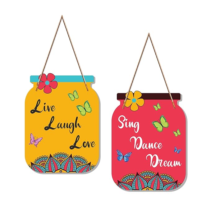 Artvibes Motivational Quotes Decorative Wall Art Wooden Hanger Ornaments for Livingroom | Set of 2