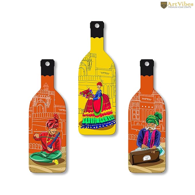 Artvibes Rajashtani Music Culture Wooden Wall Hanging for Home Decor | Set of 3