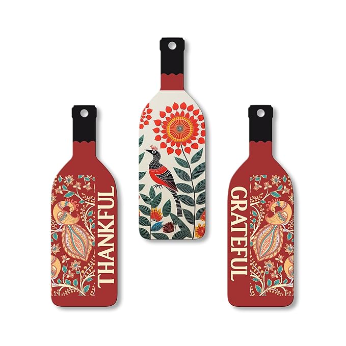 Artvibes Thankful Grateful Wooden Wall Hanging for Home Decor | Set of 3