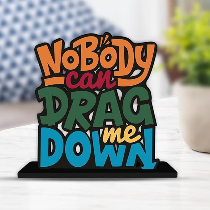 Artvibes Wooden Idols and Figurine No Body Can Drag Me Down Motivational Quotes Table Decor for Office Desk Showpiece
