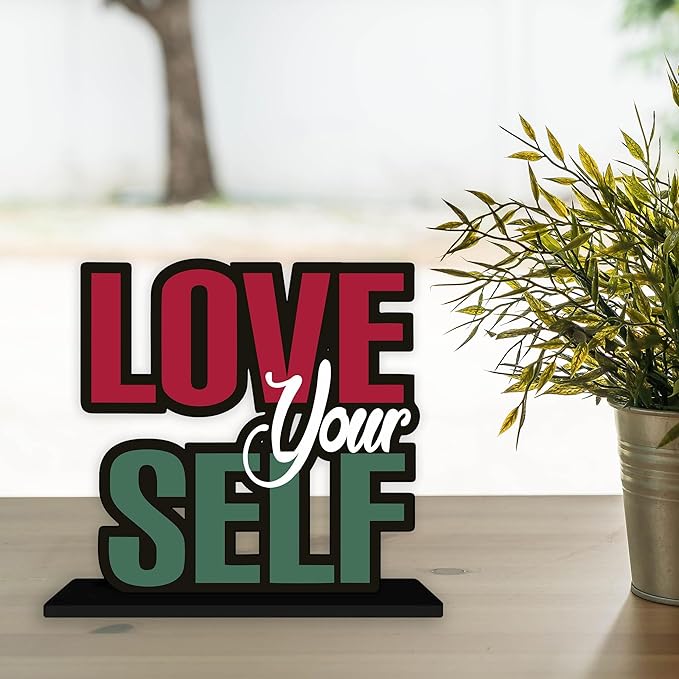 Artvibes Wooden Idols and Figurine Love Your Self Quotes Table Decor for Office Desk Alphabet Showpiece | Home Decoration Item