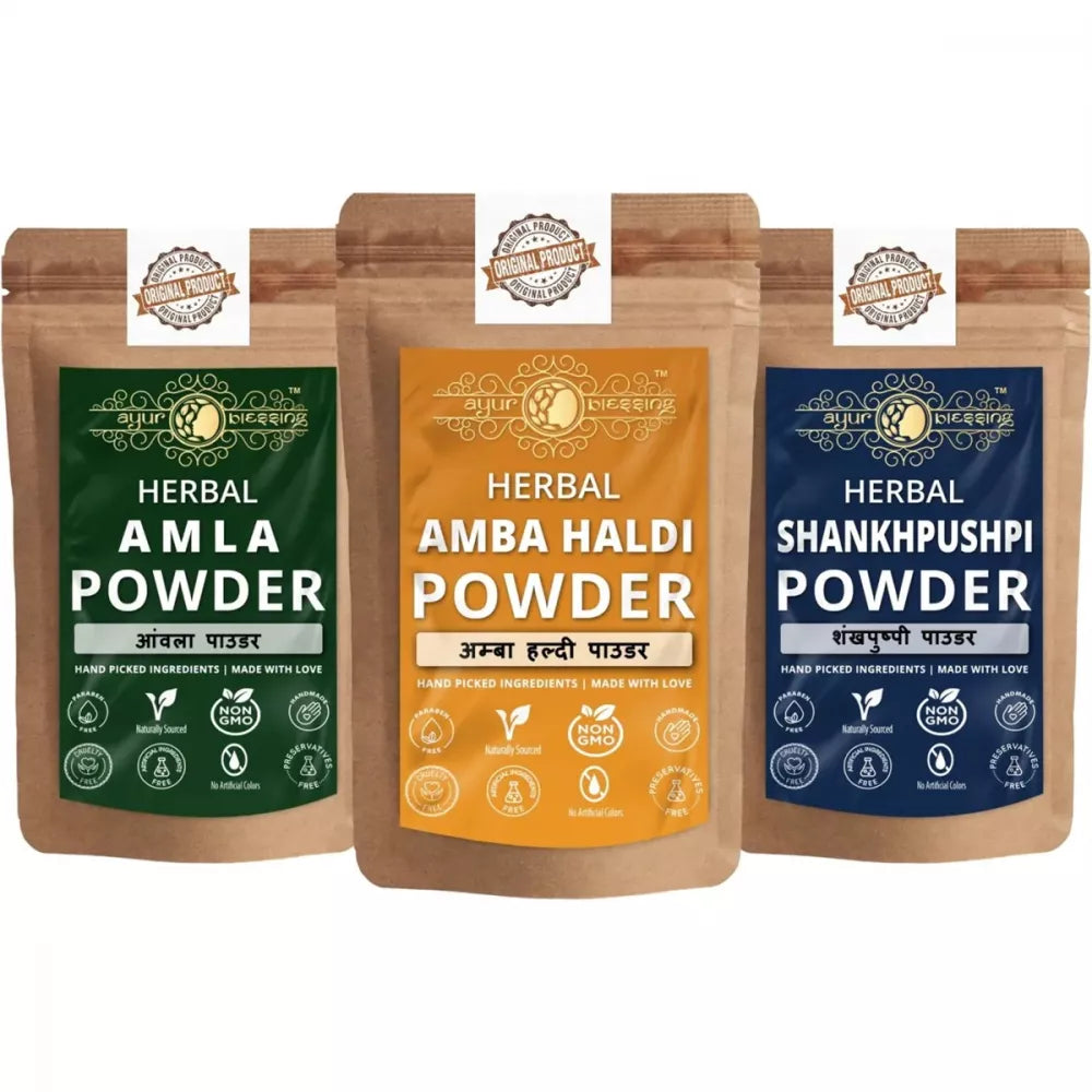 Ayur Blessing Herbal Amba Haldi & Amla & Shankhpushpi Powder Combo