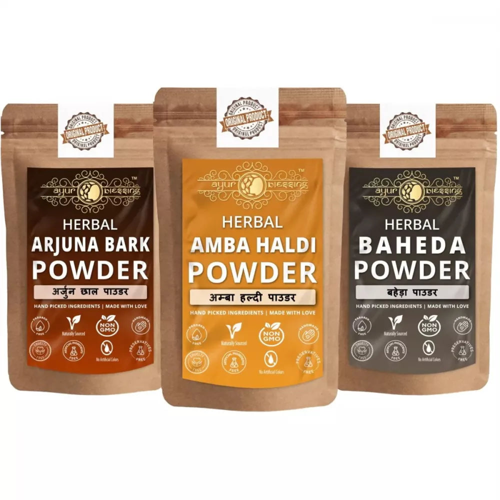 Ayur Blessing Herbal Amba Haldi & Arjuna Bark & Baheda Powder Combo
