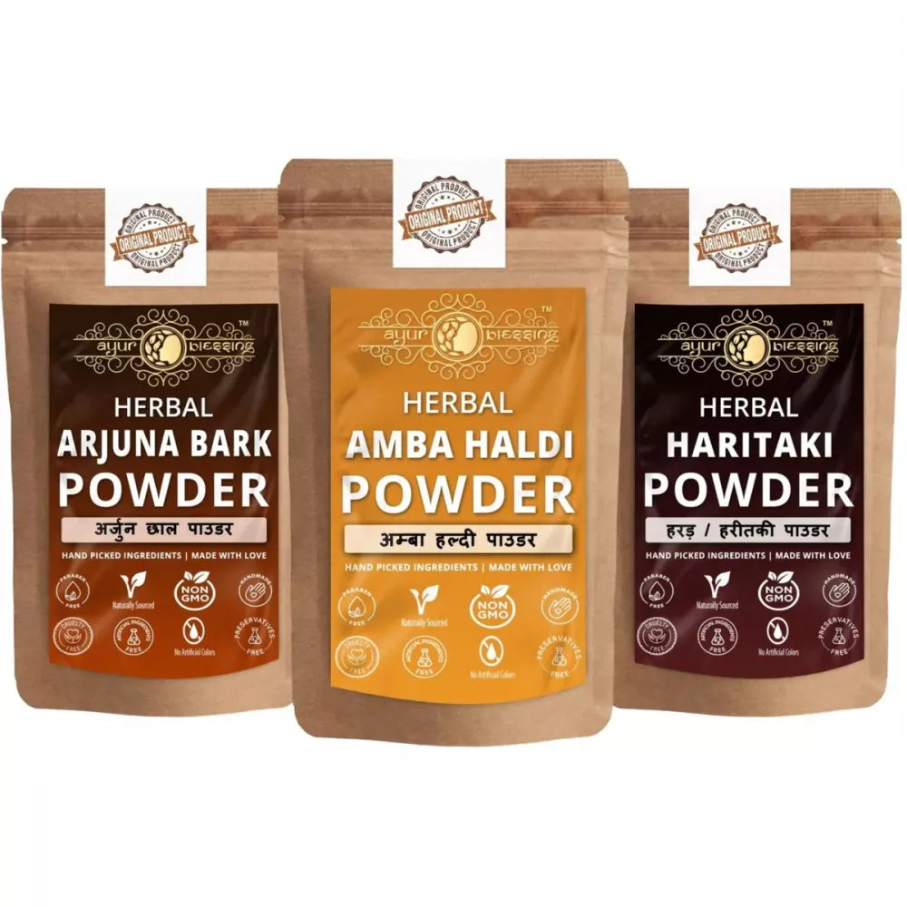Ayur Blessing Herbal Amba Haldi & Arjuna Bark & Haritaki Powder Combo