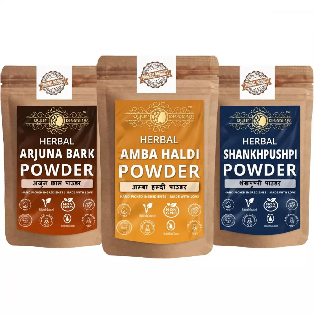 Ayur Blessing Herbal Amba Haldi & Arjuna Bark & Shankhpushpi Powder Combo