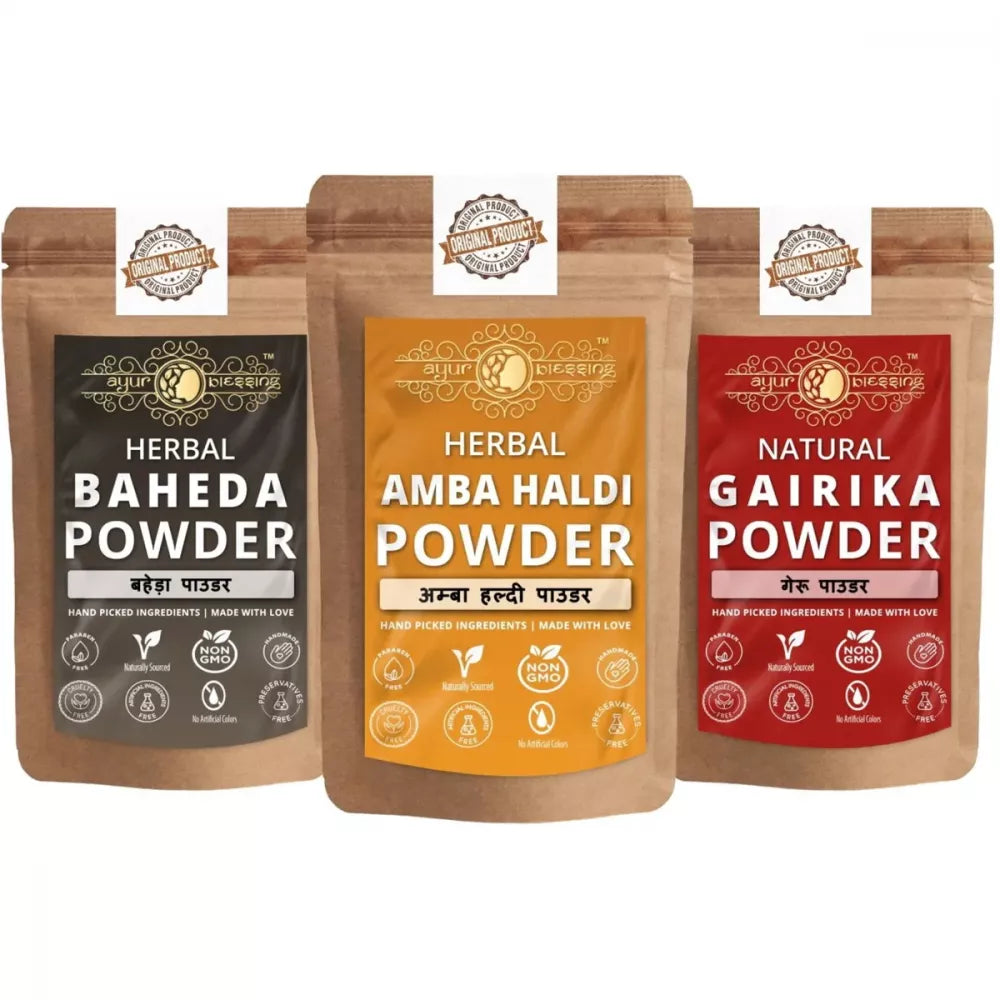 Ayur Blessing Herbal Amba Haldi & Baheda & Gairika Powder Combo
