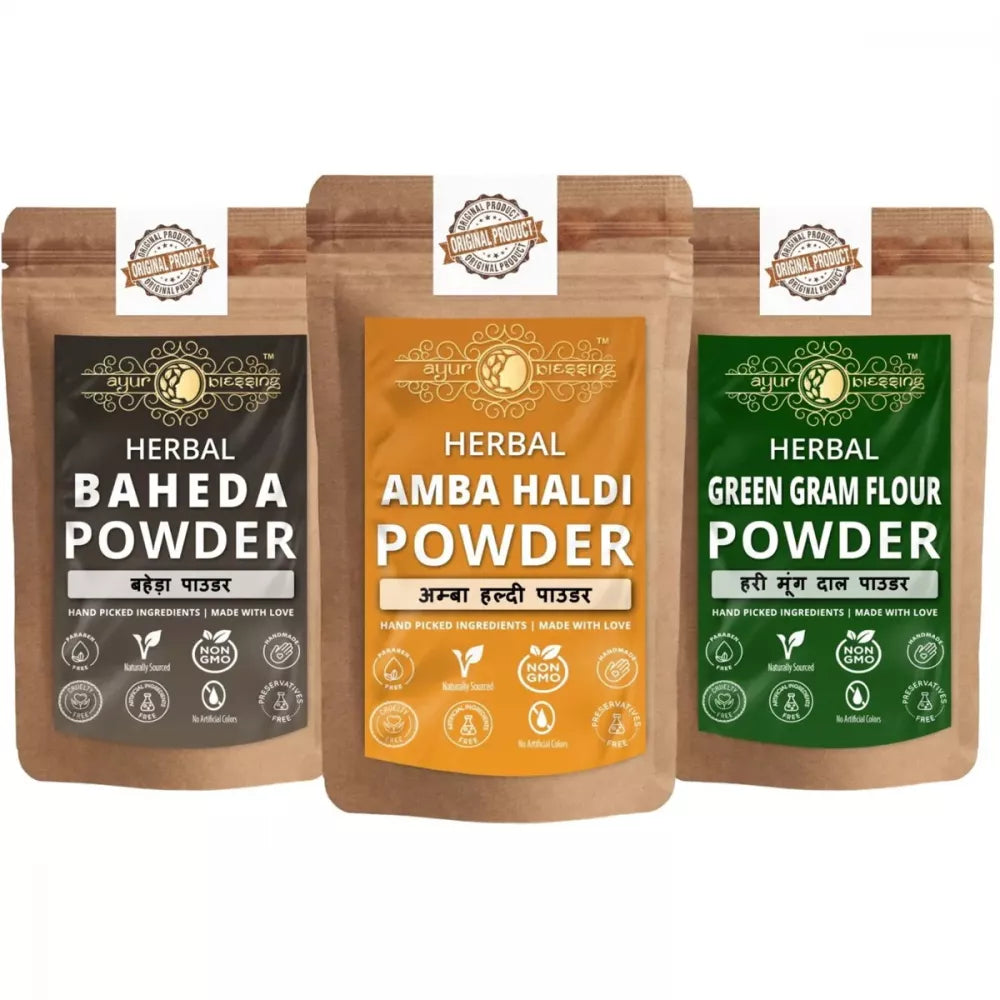 Ayur Blessing Herbal Amba Haldi & Baheda & Green Gram Flour Powder Combo
