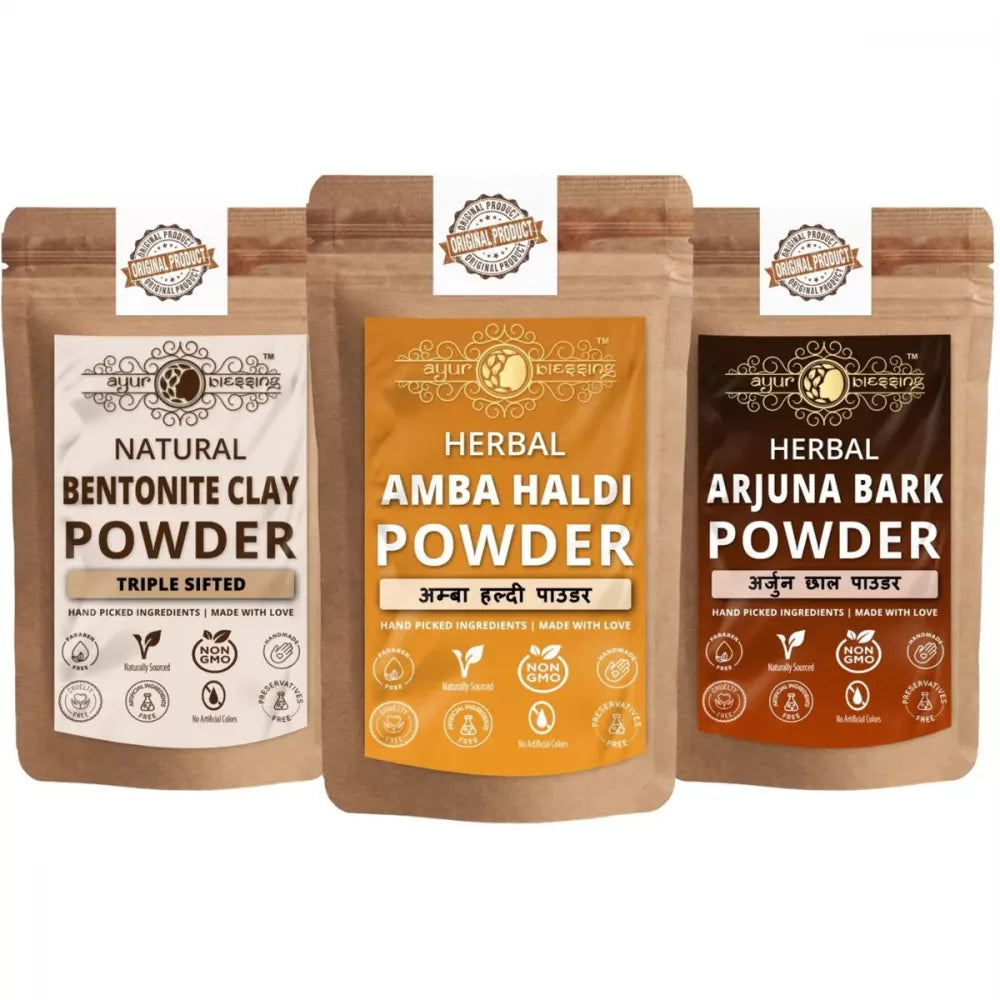 Ayur Blessing Herbal Amba Haldi & Bentonite Clay & Arjuna Bark Powder Combo