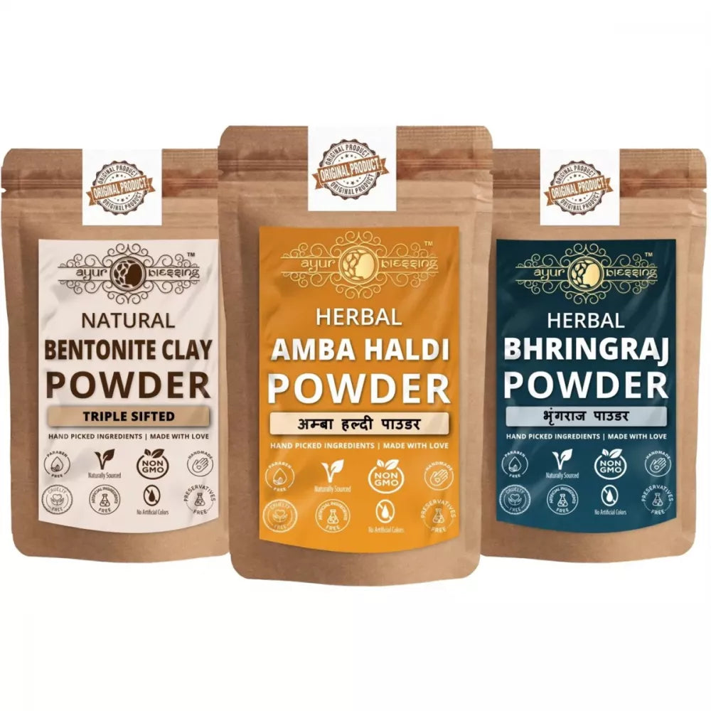 Ayur Blessing Herbal Amba Haldi & Bentonite Clay & Bhringraj Powder Combo