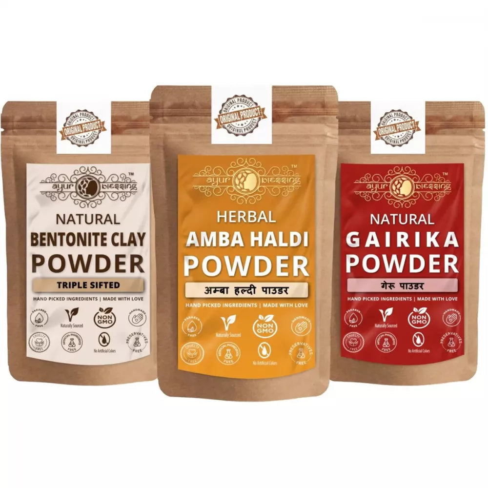 Ayur Blessing Herbal Amba Haldi & Bentonite Clay & Gairika Powder Combo