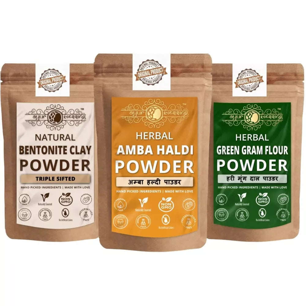 Ayur Blessing Herbal Amba Haldi & Bentonite Clay & Green Gram Flour Powder Combo