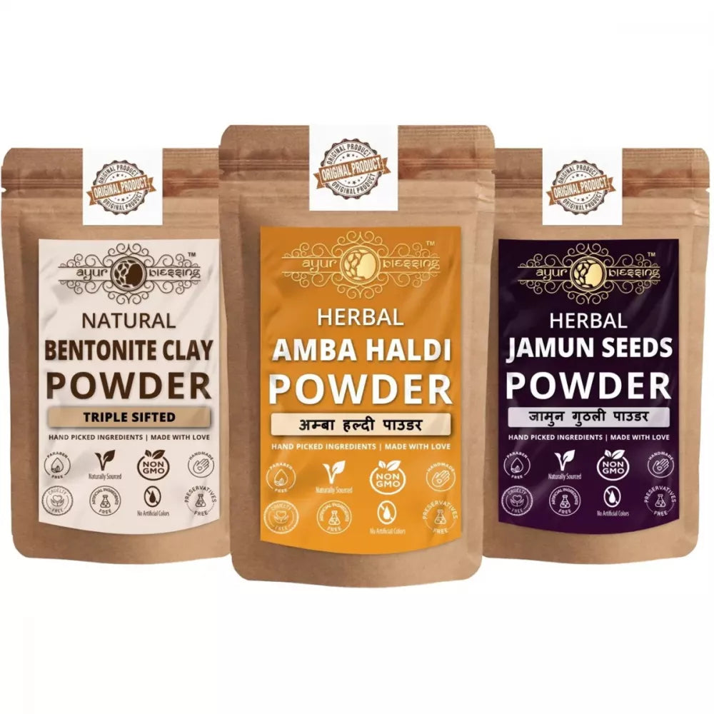 Ayur Blessing Herbal Amba Haldi & Bentonite Clay & Jamun Seeds Powder Combo