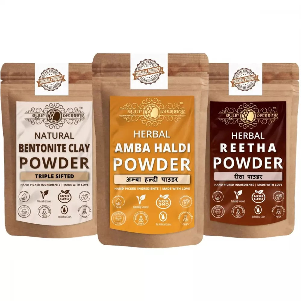 Ayur Blessing Herbal Amba Haldi & Bentonite Clay & Reetha Powder Combo