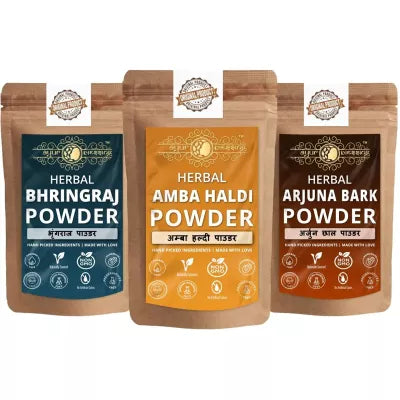 Ayur Blessing Herbal Amba Haldi & Bhringraj & Arjuna Bark Powder Combo