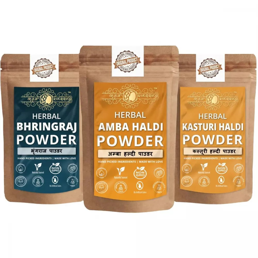 Ayur Blessing Herbal Amba Haldi & Bhringraj & Kasturi Haldi Powder Combo