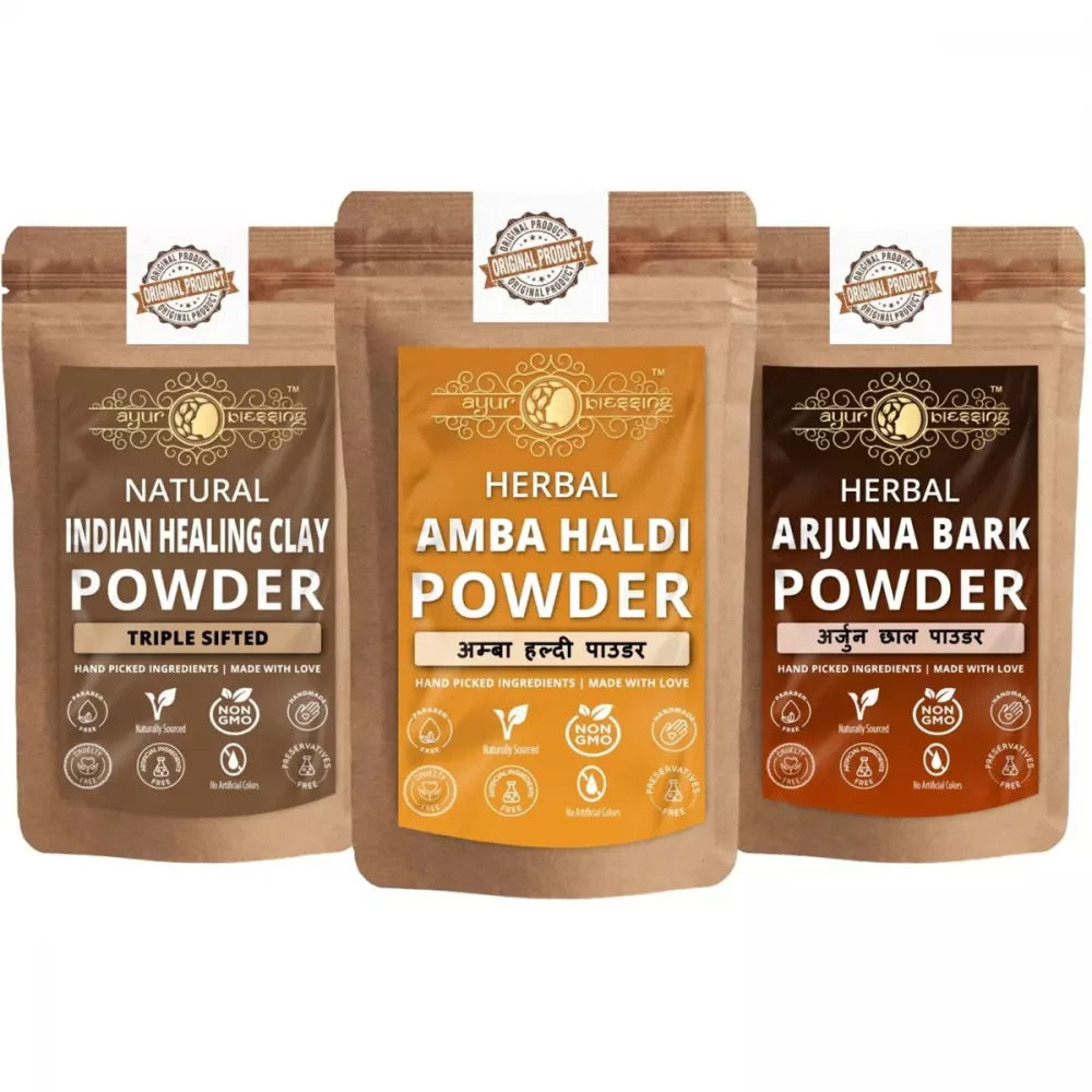 Ayur Blessing Herbal Amba Haldi & Indian Healing Clay & Arjuna Bark Powder Combo