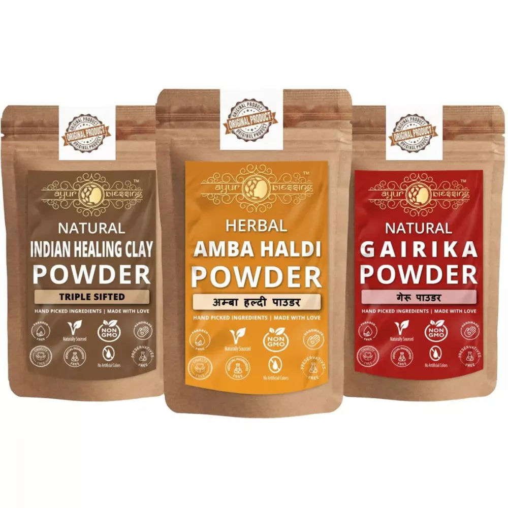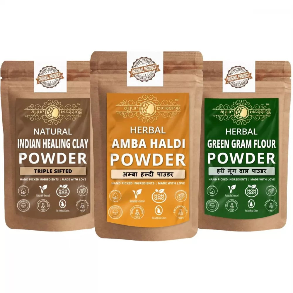 Ayur Blessing Herbal Amba Haldi & Indian Healing Clay & Green Gram Flour Powder Combo