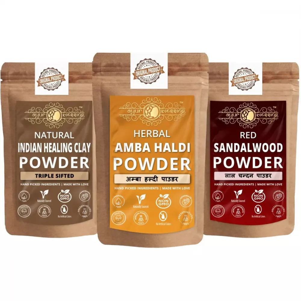 Ayur Blessing Herbal Amba Haldi & Indian Healing Clay & Red Sandalwood Powder Combo