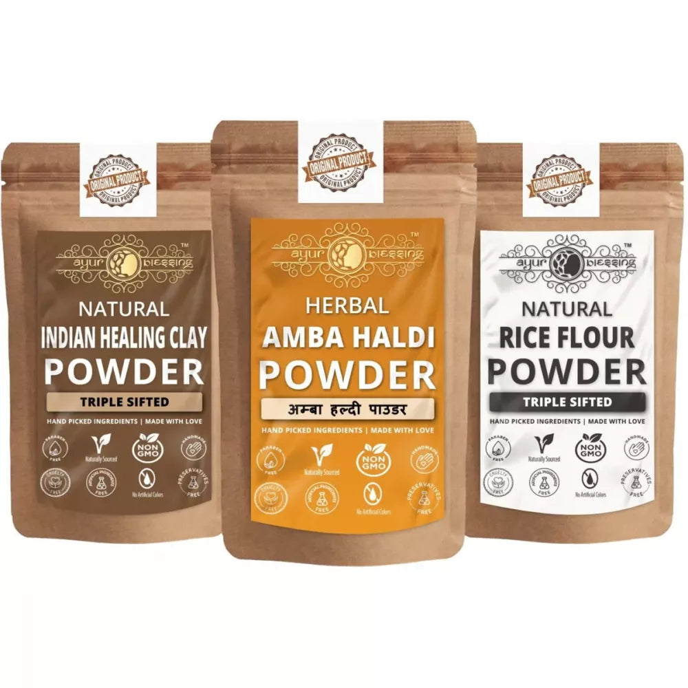 Ayur Blessing Herbal Amba Haldi & Indian Healing Clay & Rice Powder Combo