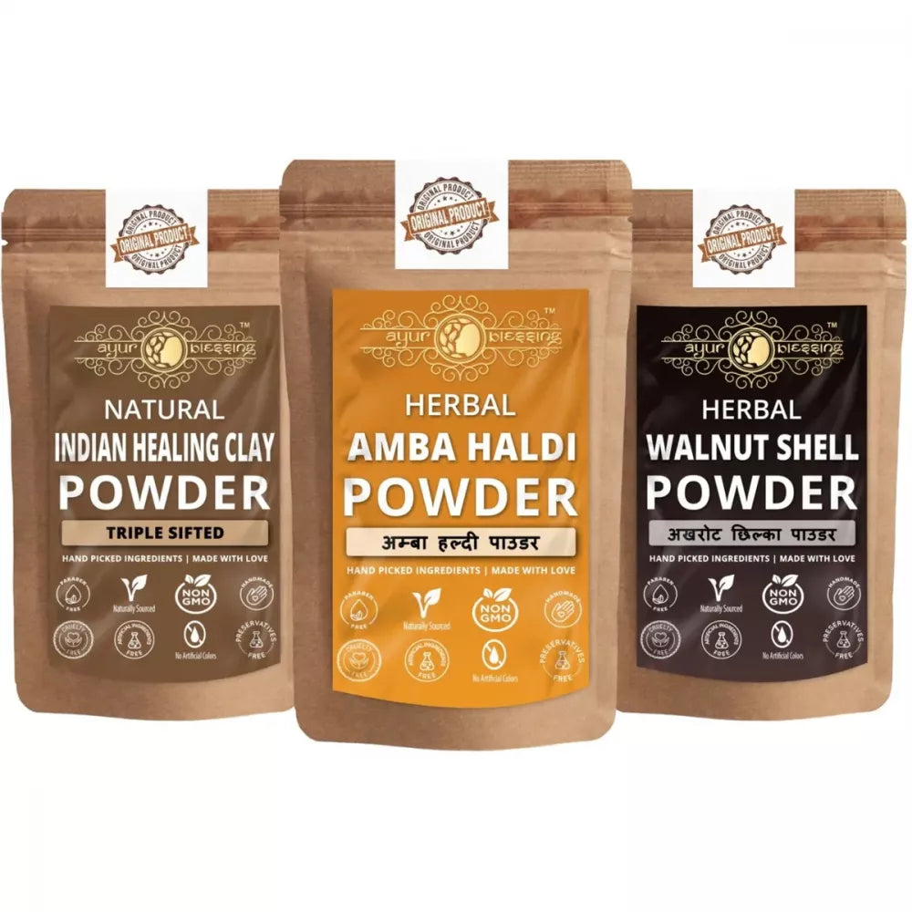 Ayur Blessing Herbal Amba Haldi & Indian Healing Clay & Walnut Shell Powder Combo