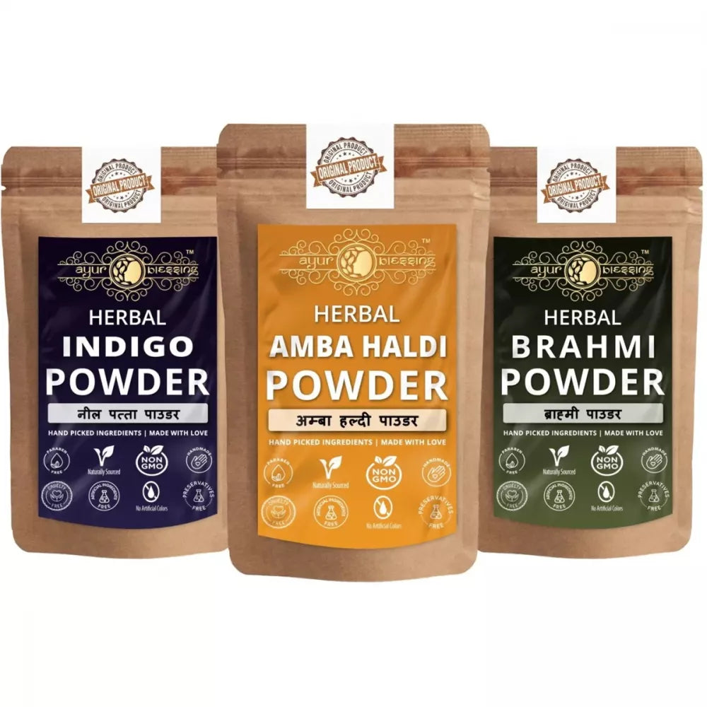 Ayur Blessing Herbal Amba Haldi & Indigo & Brahmi Powder Combo