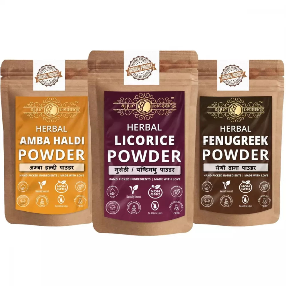 Ayur Blessing Herbal Amba Haldi & Licorice & Fenugreek Powder Combo