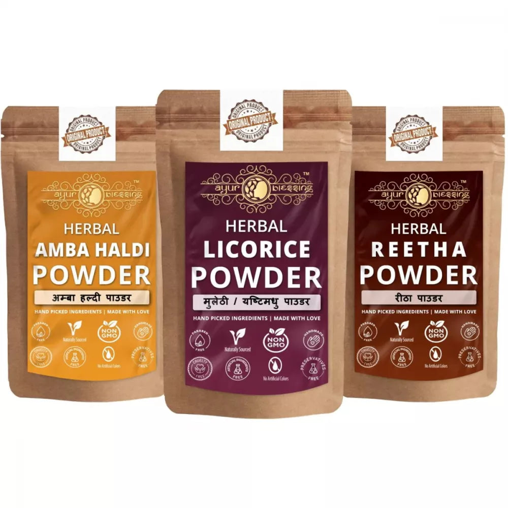 Ayur Blessing Herbal Amba Haldi & Licorice & Reetha Powder Combo