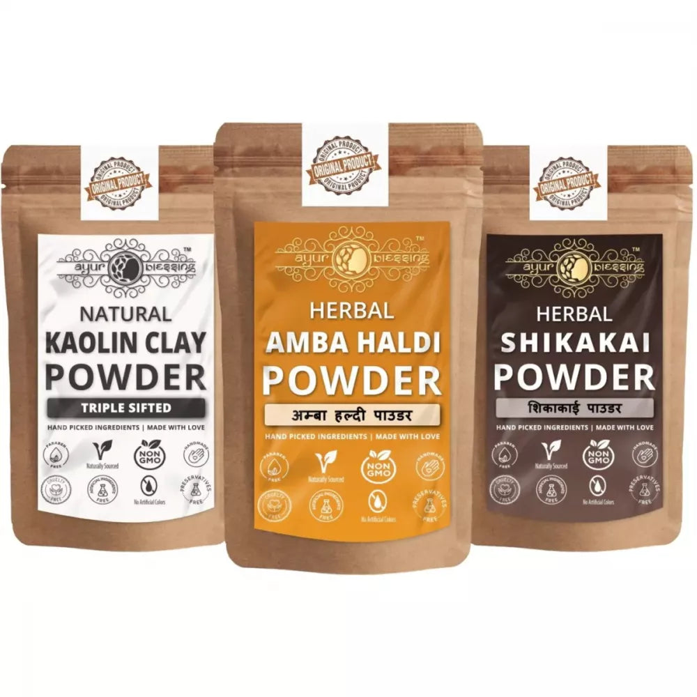 Ayur Blessing Herbal Amba Haldi & Kaolin Clay & Shikakai Powder Combo