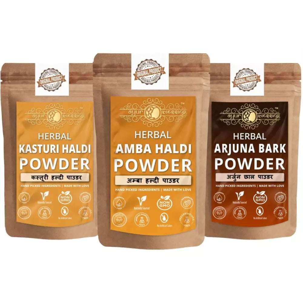 Ayur Blessing Herbal Amba Haldi & Kasturi Haldi & Arjuna Bark Powder Combo