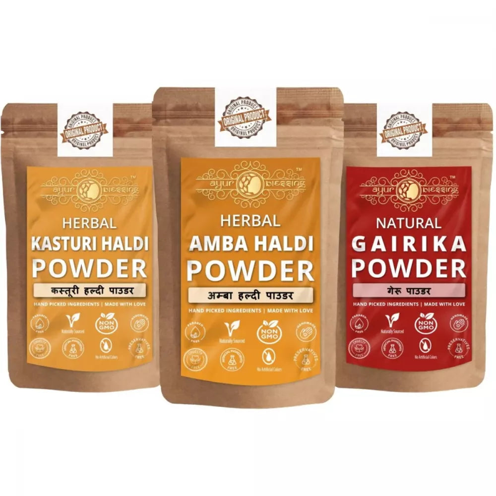 Ayur Blessing Herbal Amba Haldi & Kasturi Haldi & Gairika Powder Combo