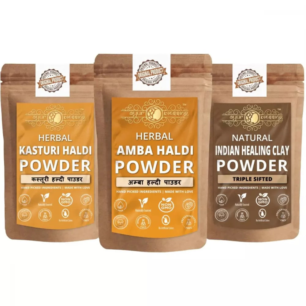 Ayur Blessing Herbal Amba Haldi & Kasturi Haldi & Indian Healing Clay Powder Combo