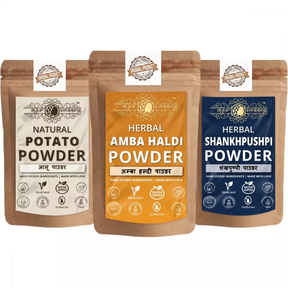 Ayur Blessing Herbal Amba Haldi & Potato & Shankhpushpi Powder Combo