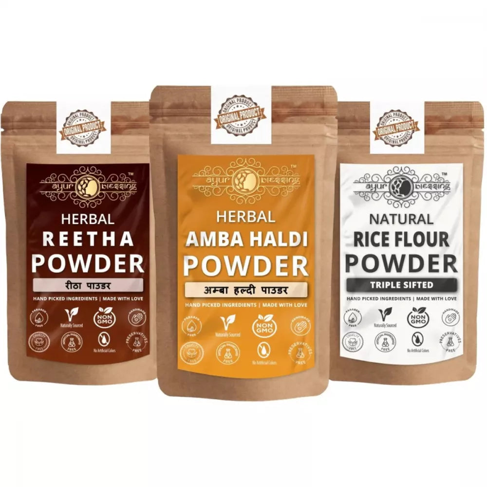 Ayur Blessing Herbal Amba Haldi & Reetha & Rice Powder Combo
