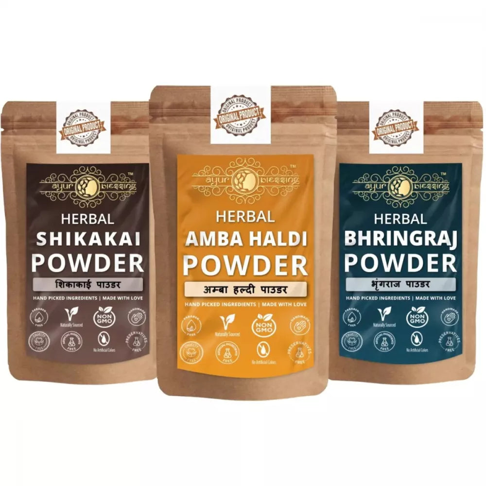 Ayur Blessing Herbal Amba Haldi & Shikakai & Bhringraj Powder Combo