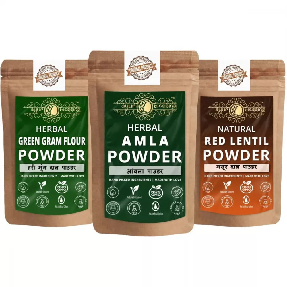 Ayur Blessing Herbal Amla & Green Gram Flour & Red Lentil Powder Combo