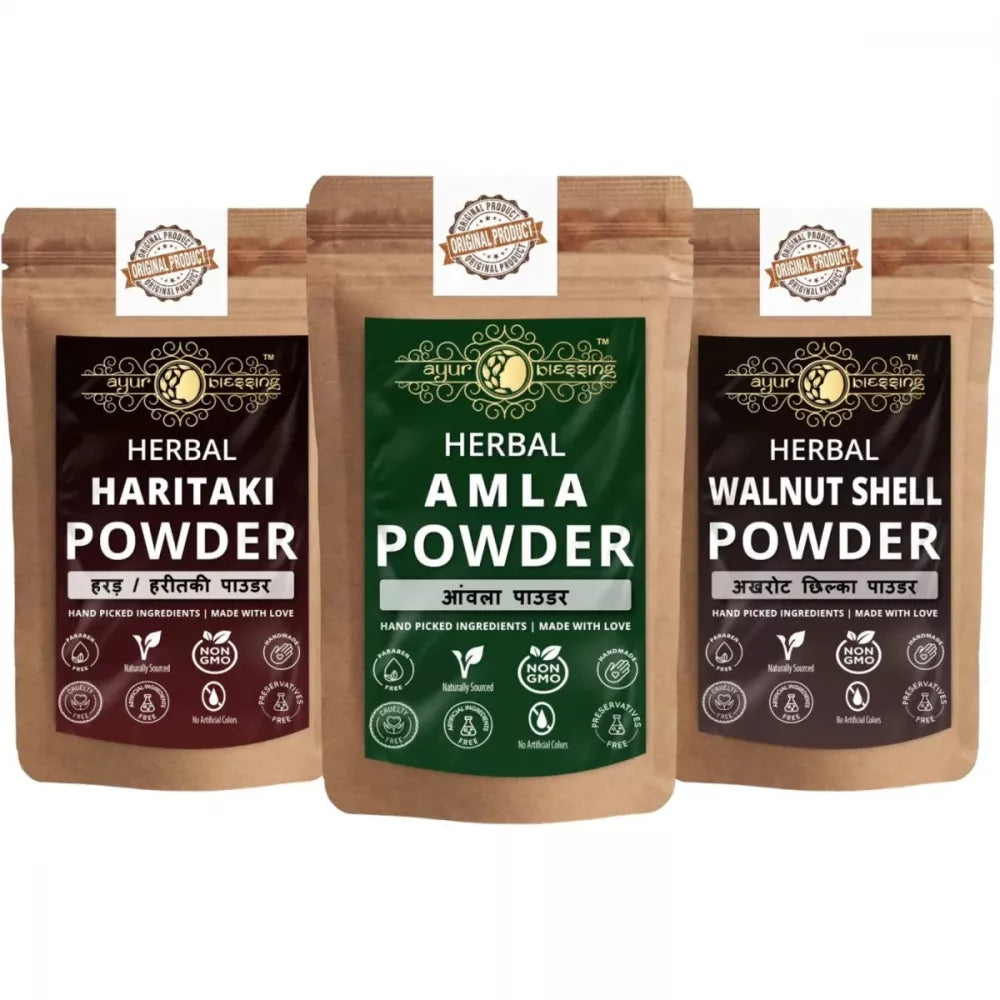 Ayur Blessing Herbal Amla & Haritaki & Walnut Shell Powder Combo