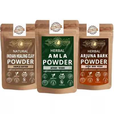 Ayur Blessing Herbal Amla & Indian Healing Clay & Arjuna Bark Powder Combo