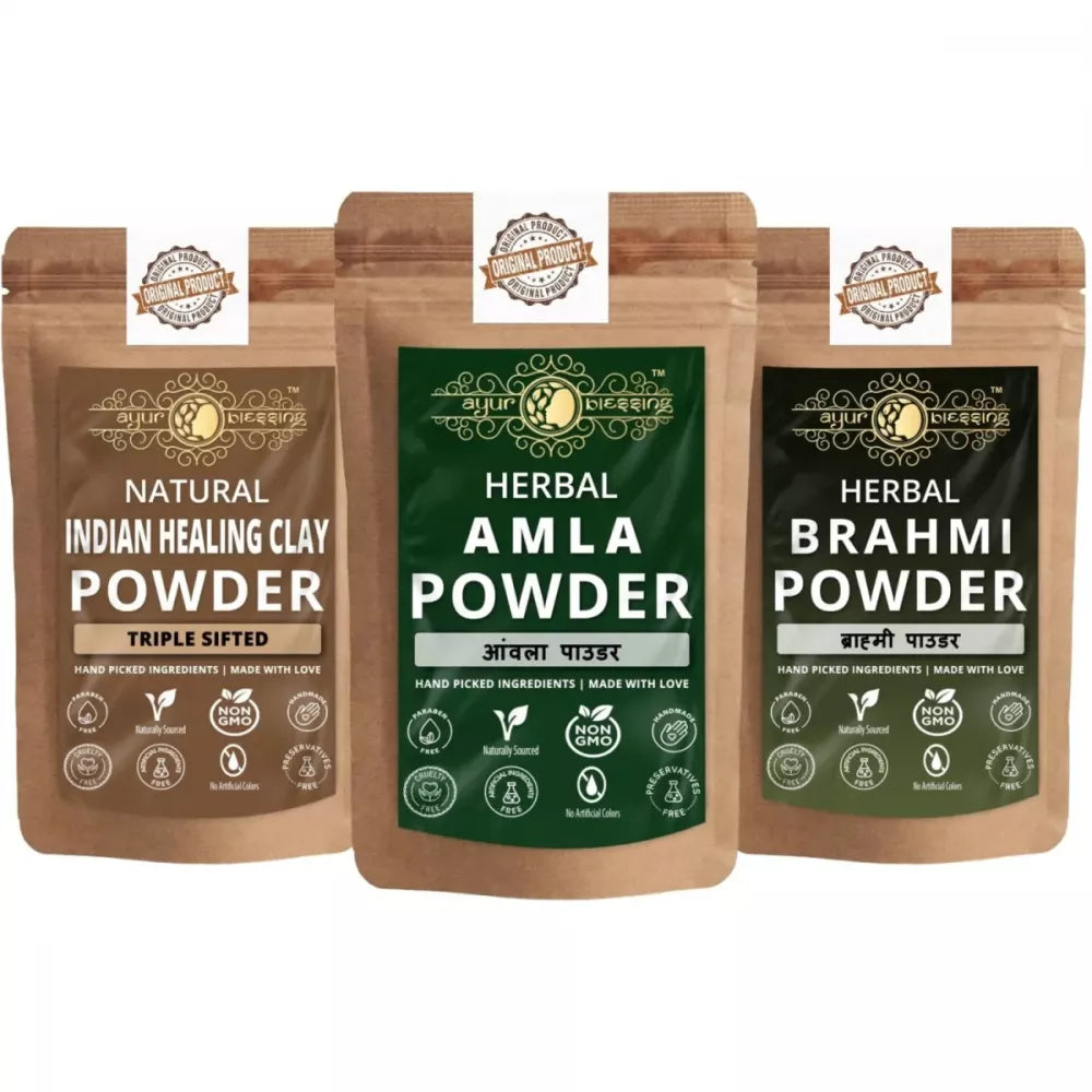 Ayur Blessing Herbal Amla & Indian Healing Clay & Brahmi Powder Combo