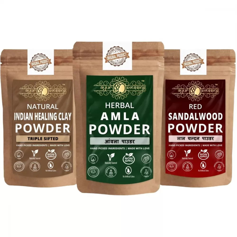 Ayur Blessing Herbal Amla & Indian Healing Clay & Red Sandalwood Powder Combo