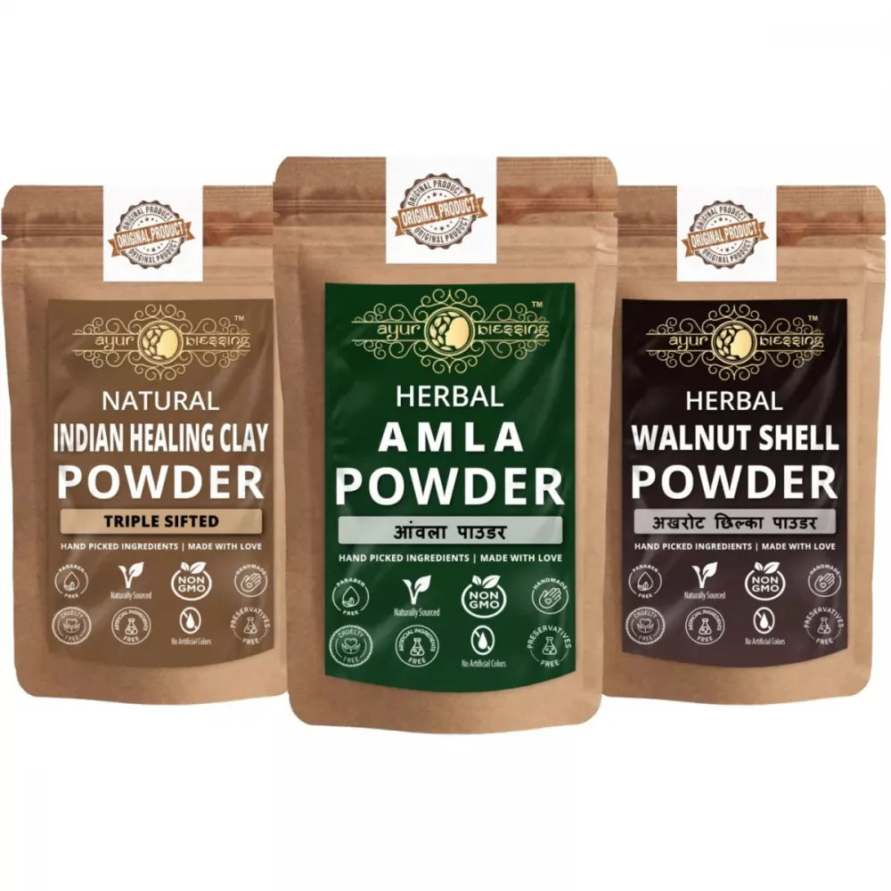 Ayur Blessing Herbal Amla & Indian Healing Clay & Walnut Shell Powder Combo