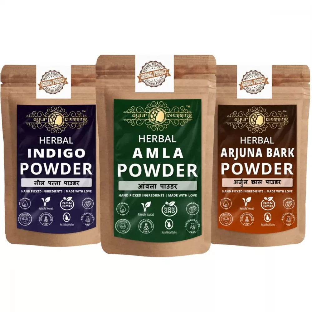 Ayur Blessing Herbal Amla & Indigo & Arjuna Bark Powder Combo