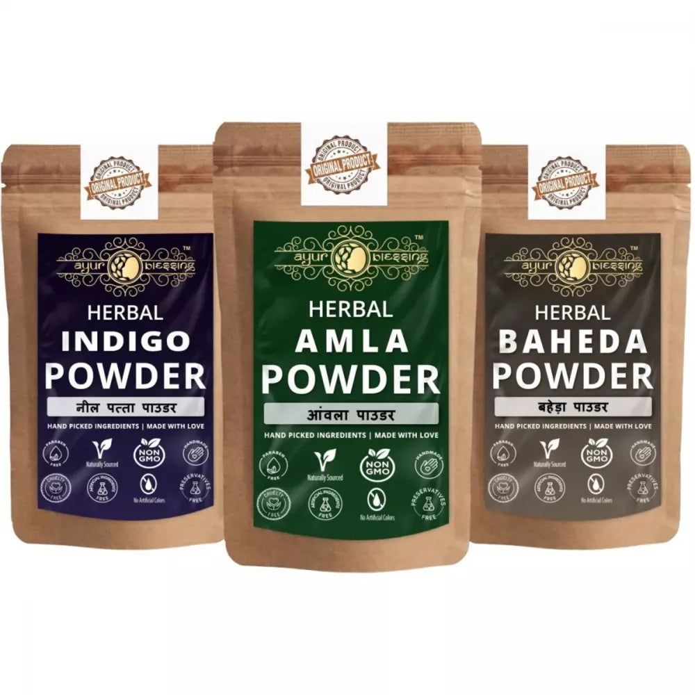 Ayur Blessing Herbal Amla & Indigo & Baheda Powder Combo