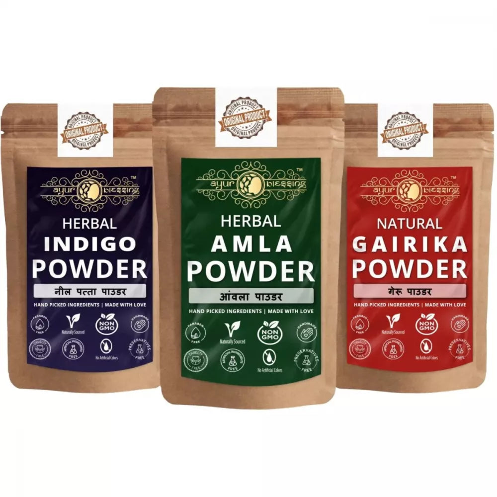 Ayur Blessing Herbal Amla & Indigo & Gairika Powder Combo