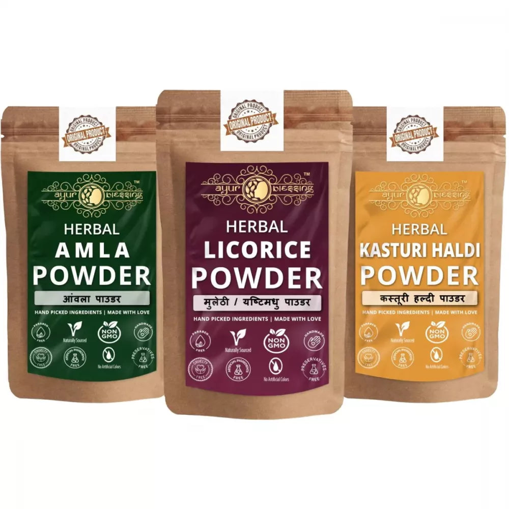 Ayur Blessing Herbal Amla & Licorice & Kasturi Haldi Powder Combo