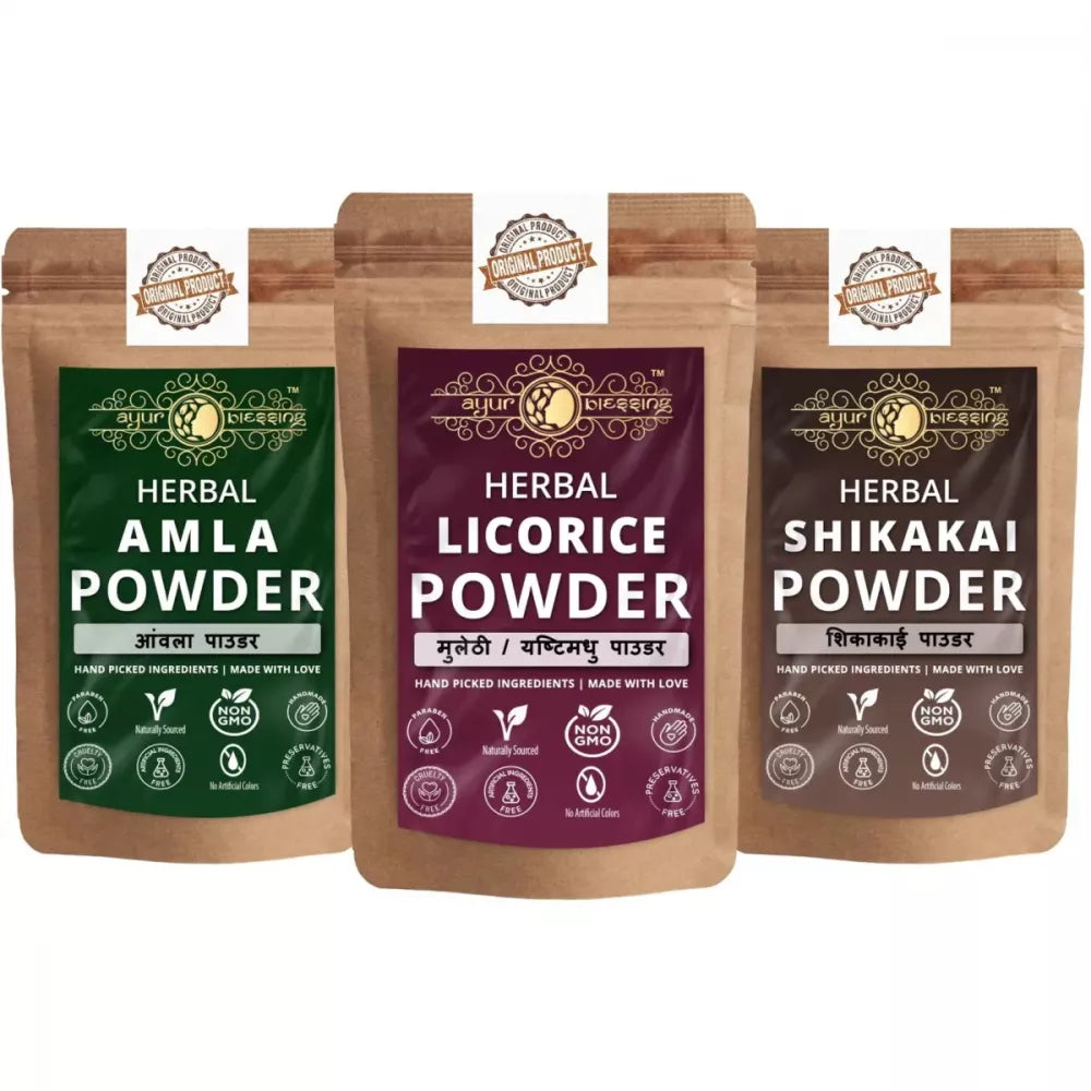 Ayur Blessing Herbal Amla & Licorice & Shikakai Powder Combo