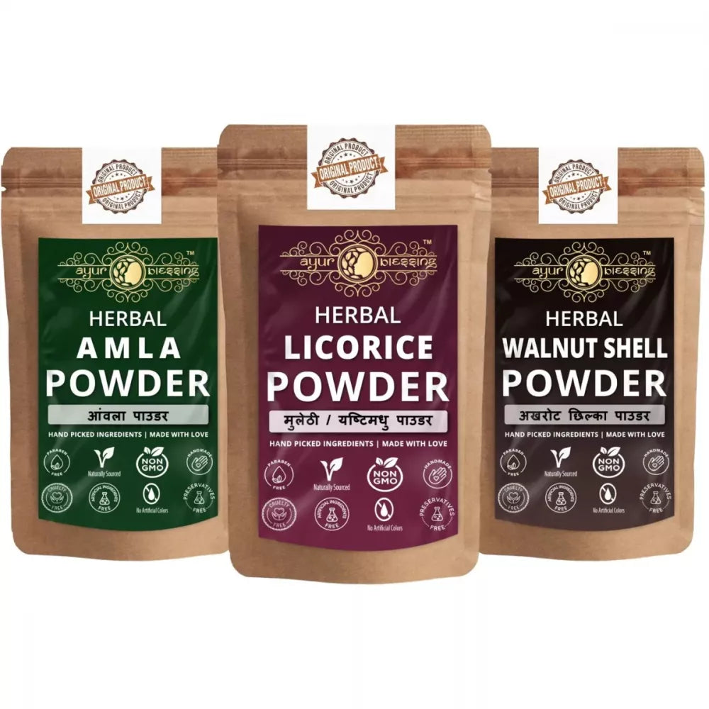 Ayur Blessing Herbal Amla & Licorice & Walnut Shell Powder Combo