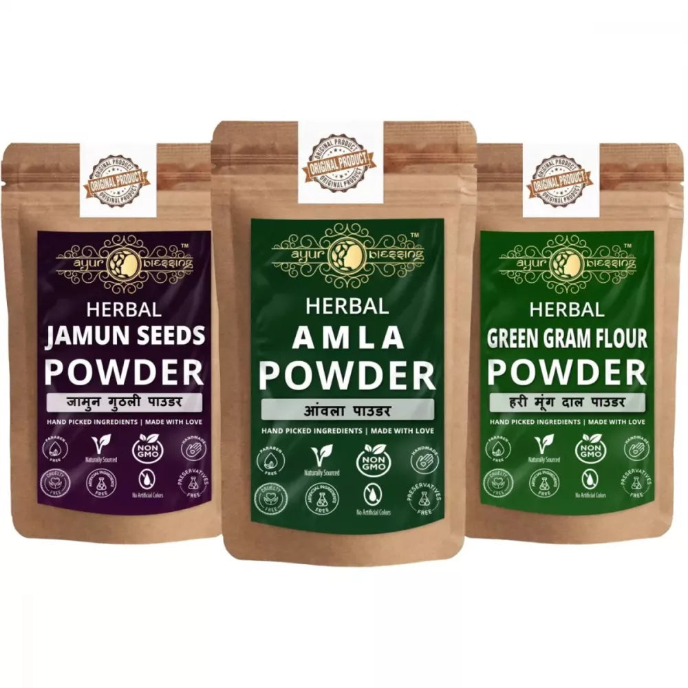Ayur Blessing Herbal Amla & Jamun Seeds & Green Gram Flour Powder Combo