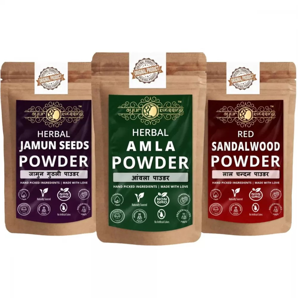 Ayur Blessing Herbal Amla & Jamun Seeds & Red Sandalwood Powder Combo
